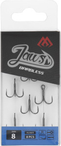 Dotaz na produktBezprotihrotová verze našich klasických trojháčků Jaws. Kvalitní, velmi ostré a pevné trojháčky, bez protihrotu, skvěle poslouží pro zbrojení woblerů a třpytek. Velmi ostrý hrot umožňuje i efektivní zásek.