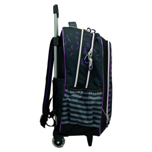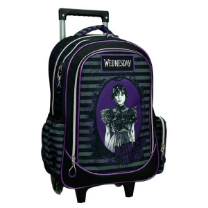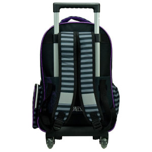 Prostorný trollej batoh s motivem Wednesday. dvě prostrorné hlavní klopy další přední kapsa pro snadný přístup k nejdůležitějším věcem zesílený mechanismus dvojitého nošení - buď jako batoh anebo trolley na kolečkách nastavitelný se dvěma polohami pro pohodlné nošení dvě boční kapsy na lahve s pitím nastavitelné a zesílené ramenní popruhy odolná, zesílená rukojeť pro snadné nošení v ruce bezpečnostní prvky černá barva s třpytivým fialový lemem Rozměry: 46 x 35 x 20 cm. Materiál: polyester. Barva: černá. Objem: 27 l. Výrobce: Gimsa. Gimsa: Giovas S.A. Konteri str. 22, Piraeum, Greece info@gimsa.gr