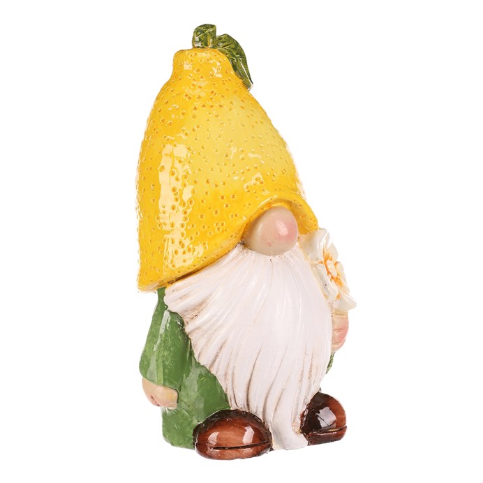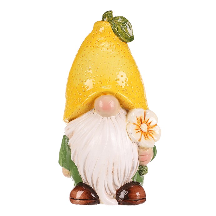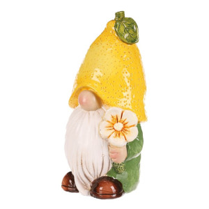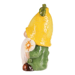 Dotaz na produktKeramická figurka trpaslíka s výraznou žlutou čepicí ve tvaru citronu přináší hravý a barevný prvek do každého interiéru či zahrady. Detailně zpracované tělo v zelené barvě doplňuje bílý vous a hnědé boty, zatímco v ruce drží květinu, která podtrhuje jeho dekorativní charakter. Povrch figurky je hladký a lesklý, což zdůrazňuje kvalitu keramického materiálu. Velikost M umožňuje snadné umístění na poličku, stůl nebo venkovní prostor. Vynikne jako originální doplněk v rustikálním i moderním prostředí.