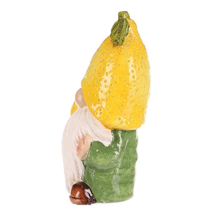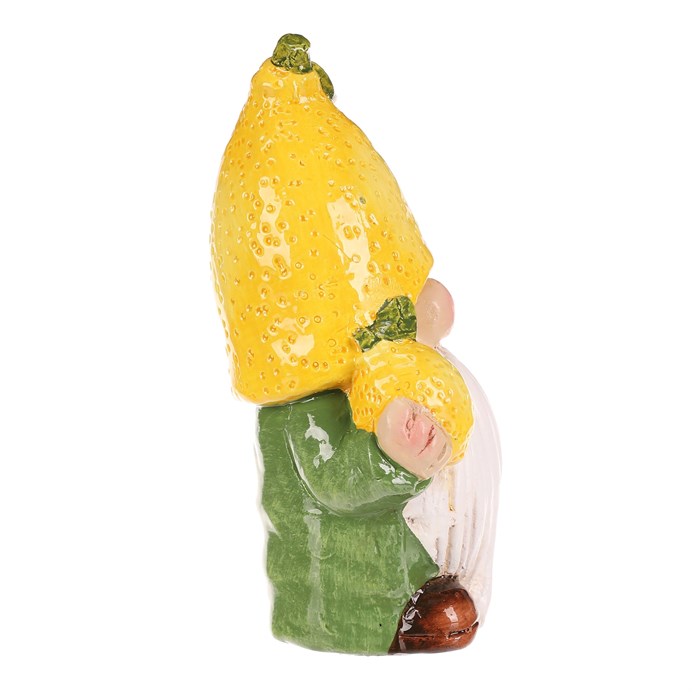 Dotaz na produktKeramická figurka trpaslíka s motivem citrónu v žlutém provedení přináší do interiéru hravý a barevný akcent. Figurku zdobí detailně zpracovaný klobouk ve tvaru citrónu s texturou kůry a malý citrón v ruce, což podtrhuje její tematický charakter. Díky pevnému keramickému základu a glazuře je vhodná pro umístění na poličku, komodu nebo zahradní dekoraci. Velikost S umožňuje snadné začlenění do různých dekorativních sestav a prostorů.