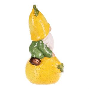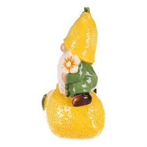 Dotaz na produktKeramická figurka trpaslíka v jasně žlutém provedení s motivem citrónu přináší hravý a barevný akcent do každého interiéru i zahrady. Sedící postava s dlouhým bílým vousem drží květinu a je doplněna detaily jako texturovaný klobouk a základna ve tvaru citrónu s listy. Díky pevnému keramickému základu je vhodná pro dekoraci na poličku, parapet nebo venkovní prostor. Výrazná žlutá barva oživí prostor a podtrhne přírodní či veselý styl aranžmá.