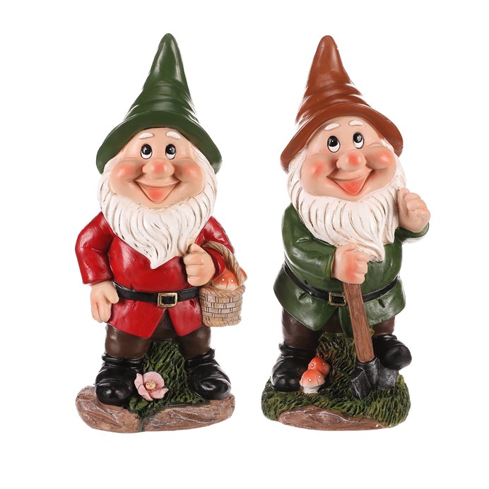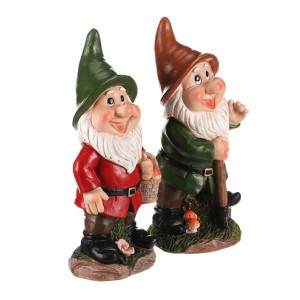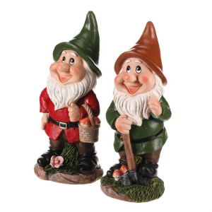 Dotaz na produkt Na splátky ještě dnesVeselé zahradní dekorace v podobě trpaslíků z polyresinu přináší do vaší zahrady hravou atmosféru. Jeden trpaslík si hrdě nese košík plný hub, druhý má sekeru – oba v pestrobarevném provedení. Mix 2 druhů skvěle oživí záhony, altánek nebo terasu a dodá vašemu exteriéru hravý nádech.
