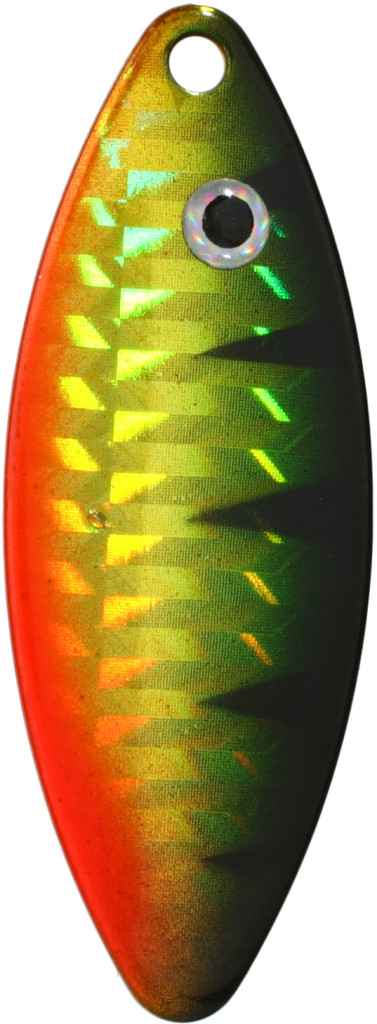 Dotaz na produktRotační třpytka s křidélkem ve tvaru vrbového lístku pracuje blízko těla pod úhlem 30°. Imituje štíhlou rybku nebo hmyz, vhodná pro vedení při dně v hlubokých vodách. Na řekách je lepší proti proudu. Váha třpytky 4 g.