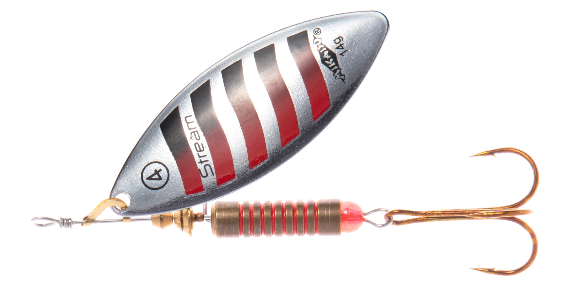 Dotaz na produktRotační třpytka s křidélkem ve tvaru vrbového lístku pracuje blízko těla pod úhlem 30°. Imituje štíhlou rybku nebo hmyz, vhodná pro vedení při dně v hlubokých vodách. Na řekách je lepší proti proudu. Váha třpytky 4 g.