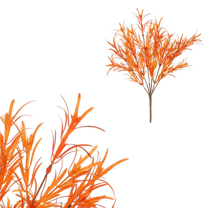 Dotaz na produktOživte svůj prostor úžasnou energií s naší umělou přízdobou v podobě trsu úzkých lístků v nádherné oranžové barvě. Tento elegantní doplněk přinese do vašeho domova živý a příjemný dotek přírody, který nikdy neuvadne.