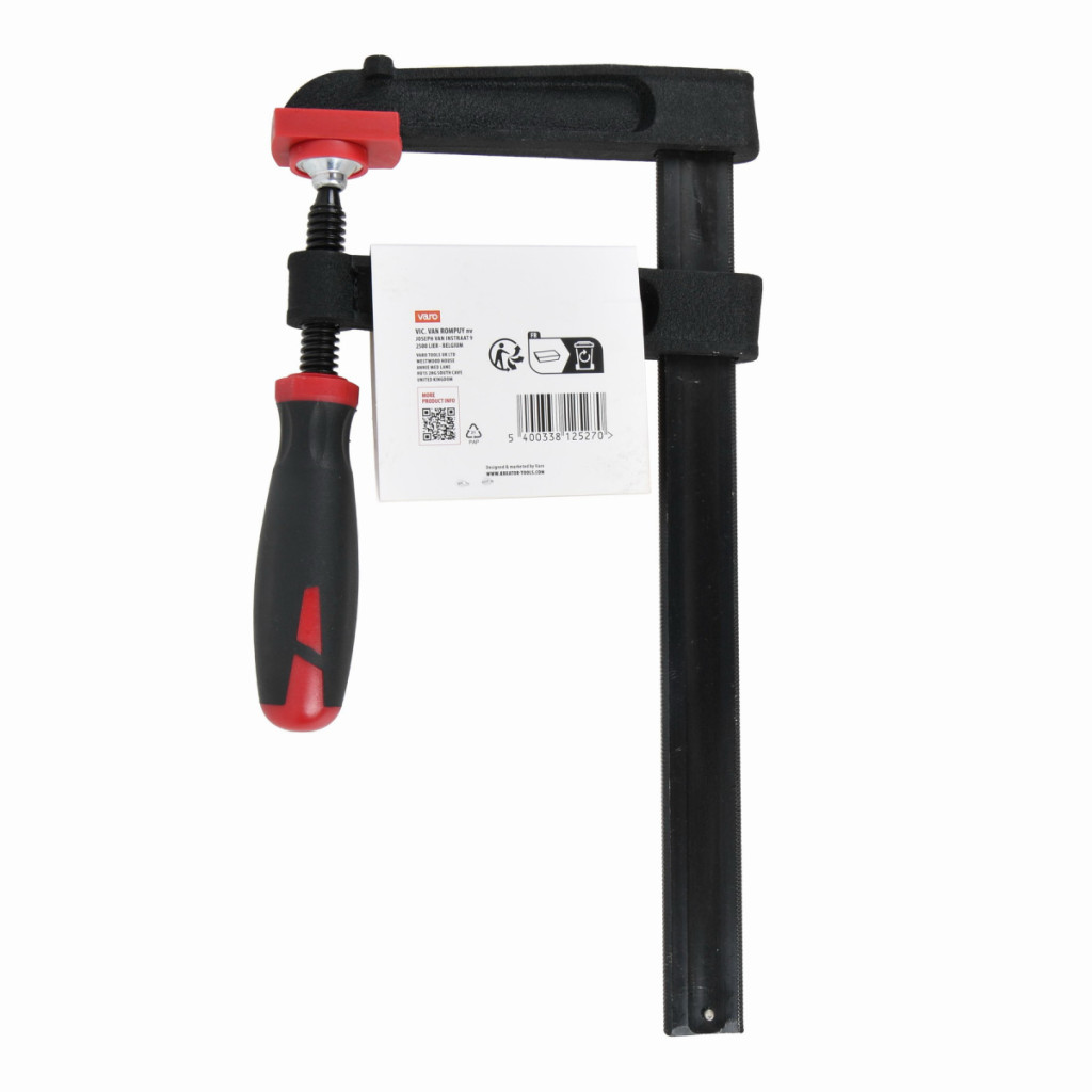 Dotaz na produktTuto truhlářskou vysoce kvalitní svěrku KRTH40204 od Kreator o celkové délce 350 mm použijte k zajištění předmětů a materiálů v max. délce až 250 mm. Tím se zabrání jejich pohybu nebo uvolnění. Čelisti jsou vyrobeny z kvalitní temperované litiny. Měkké ochranné podložky zajišťují pevný úchop a zároveň zabraňují poškrábání nebo promáčknutí obrobku.