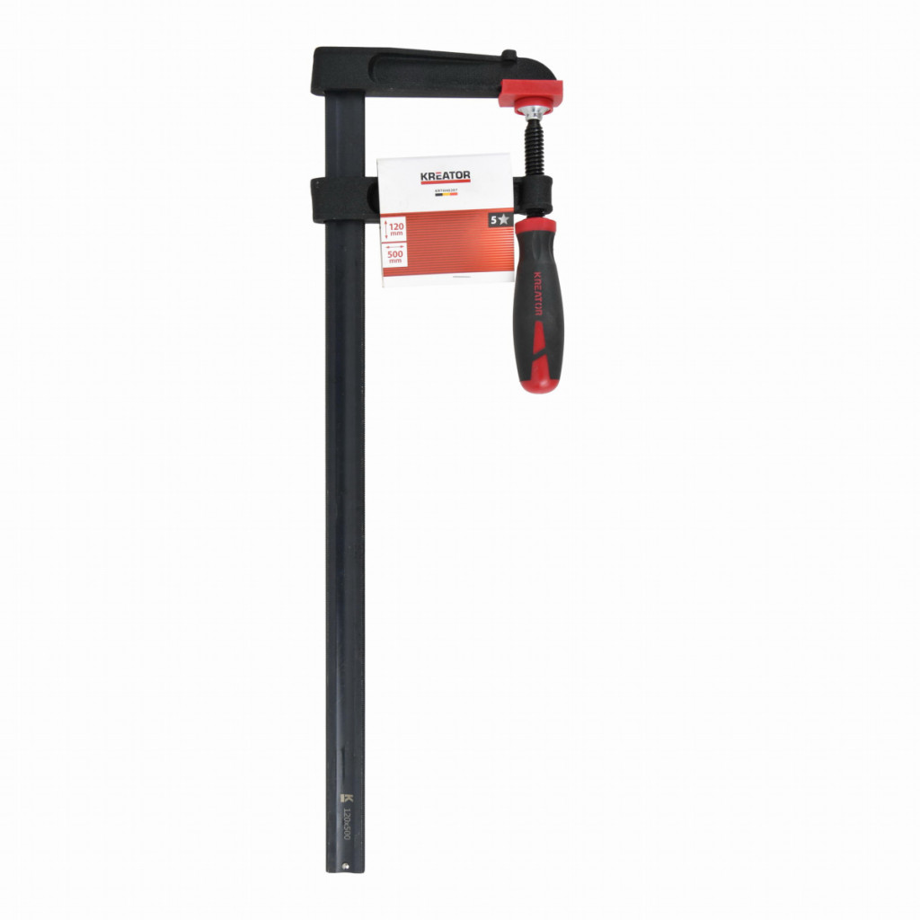 Dotaz na produktTuto truhlářskou vysoce kvalitní svěrku KRTH40207 od Kreator o celkové délce 600 mm použijte k zajištění předmětů a materiálů v max. délce až 500 mm. Tím se zabrání jejich pohybu nebo uvolnění. Čelisti jsou vyrobeny z kvalitní temperované litiny. Měkké ochranné podložky zajišťují pevný úchop a zároveň zabraňují poškrábání nebo promáčknutí obrobku.