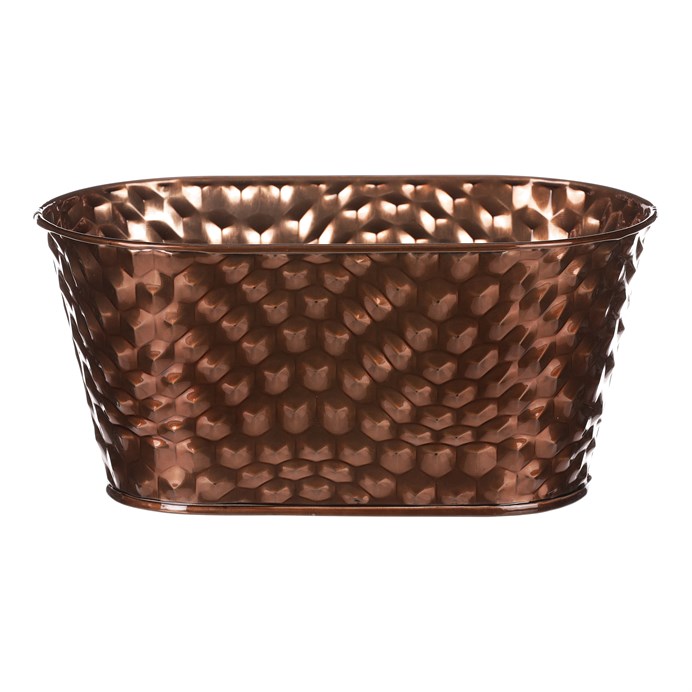 Dotaz na produktChcete si udělat radost nevšedním vyzdobením vašeho oblíbeného prostoru květinami, a dochází vám nápady do čeho je vsadit? Zkuste sáhnout po této jedinečné dekoraci v podobě kovového truhlíku na květiny v barvě mědi a nebudete litovat. Díky svému tvaru a vzhledu se tento kovový obal stane okouzlujícím doplňkem pro vaše květiny. Kombinace krásných rostlin zasazených do takto zdobené a tvarované dekorace spolu vytvoří jedinečnou kompozici. Při pohledu na tuto vámi vytvořenou krásu budete na sebe hrdí a mít skvělý pocit z dobře odvedené práce. Přineste si do svého domova prvek originality s tímto nevšedním kovovým obalem na květiny, který okouzlí každého obdivovatele rostlin a skvěle oživí váš prostor.