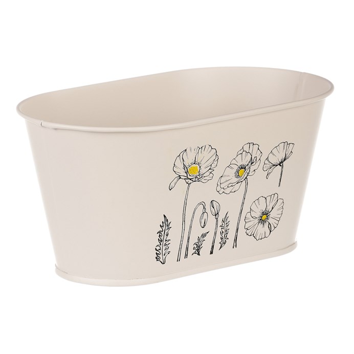Dotaz na produktChcete si udělat radost nevšedním vyzdobením vašeho oblíbeného prostoru květinami, a dochází vám nápady do čeho je vsadit? Zkuste sáhnout po této jedinečné dekoraci v podobě kovového truhlíku s obrázkem rozkvetlých máků v krémové barvě a nebudete litovat. Díky svému tvaru a vzhledu se tento kovový obal stane okouzlujícím doplňkem pro vaše květiny. Kombinace krásných rostlin zasazených do takto zdobené a tvarované dekorace spolu vytvoří jedinečnou kompozici. Při pohledu na tuto vámi vytvořenou krásu budete na sebe hrdí a mít skvělý pocit z dobře odvedené práce. Přineste si do svého domova prvek originality s tímto nevšedním kovovým obalem na květiny, který okouzlí každého obdivovatele rostlin a skvěle oživí váš prostor.