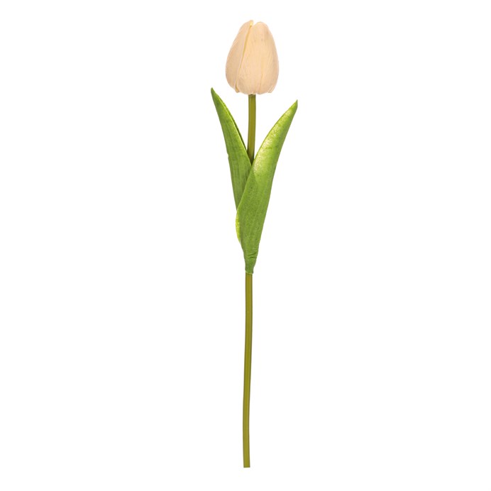 Dotaz na produktUmělý řezaný tulipán v bílé barvě je vyroben z polyuretanové pěny, která věrně napodobuje přirozenou strukturu květu i listů. Jeho štíhlý stonek a jemné listy dodávají dekoraci realistický vzhled, který vynikne v různých aranžmá i samostatně. Díky použití pěnového materiálu je květ lehký a snadno se s ním manipuluje. Bílý odstín přináší do prostoru svěžest a čistotu, ideální pro jarní dekorace nebo minimalistické interiéry.