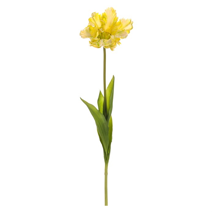 Dotaz na produktUmělý řezaný tulipán třepenitý ve žluté barvě představuje dekorativní prvek s realistickým vzhledem, který je vyroben z měkké plastové hmoty. Jemně tvarované okvětní lístky s třepenitými okraji věrně napodobují přirozenou strukturu květu, zatímco dlouhý stonek je doplněn několika zelenými listy, které dodávají celku přirozený charakter. Materiál zajišťuje příjemný dotek a odolnost vůči běžnému opotřebení, což umožňuje dlouhodobé použití v interiéru bez nutnosti údržby. Díky své výšce a detailnímu zpracování je vhodný pro aranžmá ve váze, květinových dekoracích nebo jako samostatný estetický doplněk. Tento umělý tulipán je ideální volbou pro ty, kteří hledají trvalou dekoraci s autentickým vzhledem bez péče o živé rostliny.