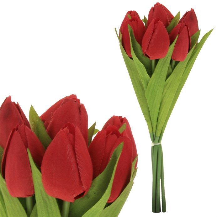 Dotaz na produktTato kytice umělých červeně zbarvených tulipánů obsahuje sedm krásných květů, které jsou ideální pro jarní aranžování. Díky nim můžete vytvořit vlastní barevné zátiší přímo doma či jiných vhodných prostorech. Umělé tulipány nejenom skvěle vyzdobí vybrané místo, ale také mu dodají svěžest a barevnost, kterou si spojujeme právě s příchodem jara. Jsou to nádherné a oblíbené jarní květiny, ale jako řezané bohužel nevydrží příliš dlouho, protože jejich okvětní lístky rychle opadávají. S těmito umělými však tento problém nenastane, a tak si jich v plné kráse můžete užívat natrvalo.