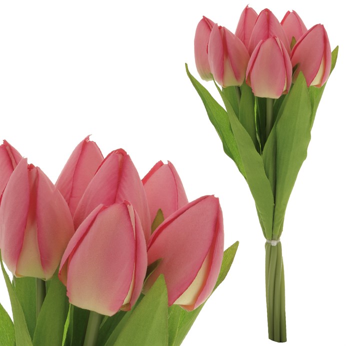 Dotaz na produktTato kytice umělých růžových tulipánů obsahuje sedm krásných květů, které jsou ideální pro jarní aranžování. Díky nim můžete vytvořit vlastní barevné zátiší přímo doma či jiných vhodných prostorech. Umělé tulipány nejenom skvěle vyzdobí vybrané místo, ale také mu dodají svěžest a barevnost, kterou si spojujeme právě s příchodem jara. Jsou to nádherné a oblíbené jarní květiny, ale jako řezané bohužel nevydrží příliš dlouho, protože jejich okvětní lístky rychle opadávají. S těmito umělými však tento problém nenastane, a tak si jich v plné kráse můžete užívat natrvalo.