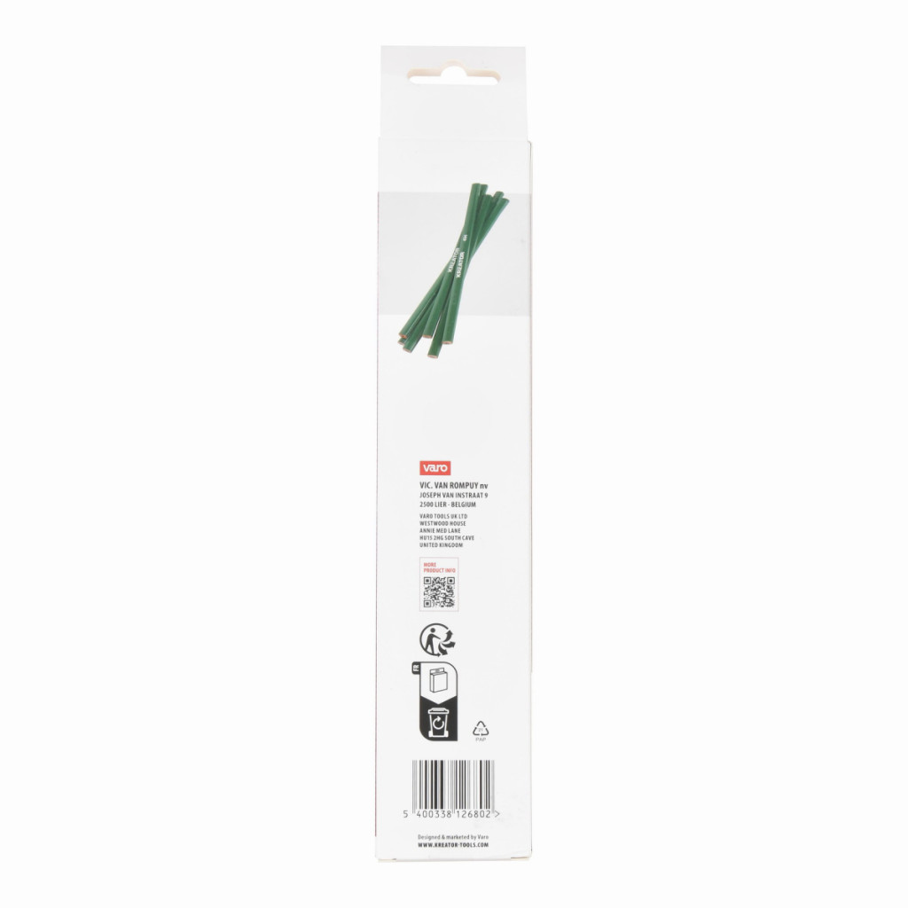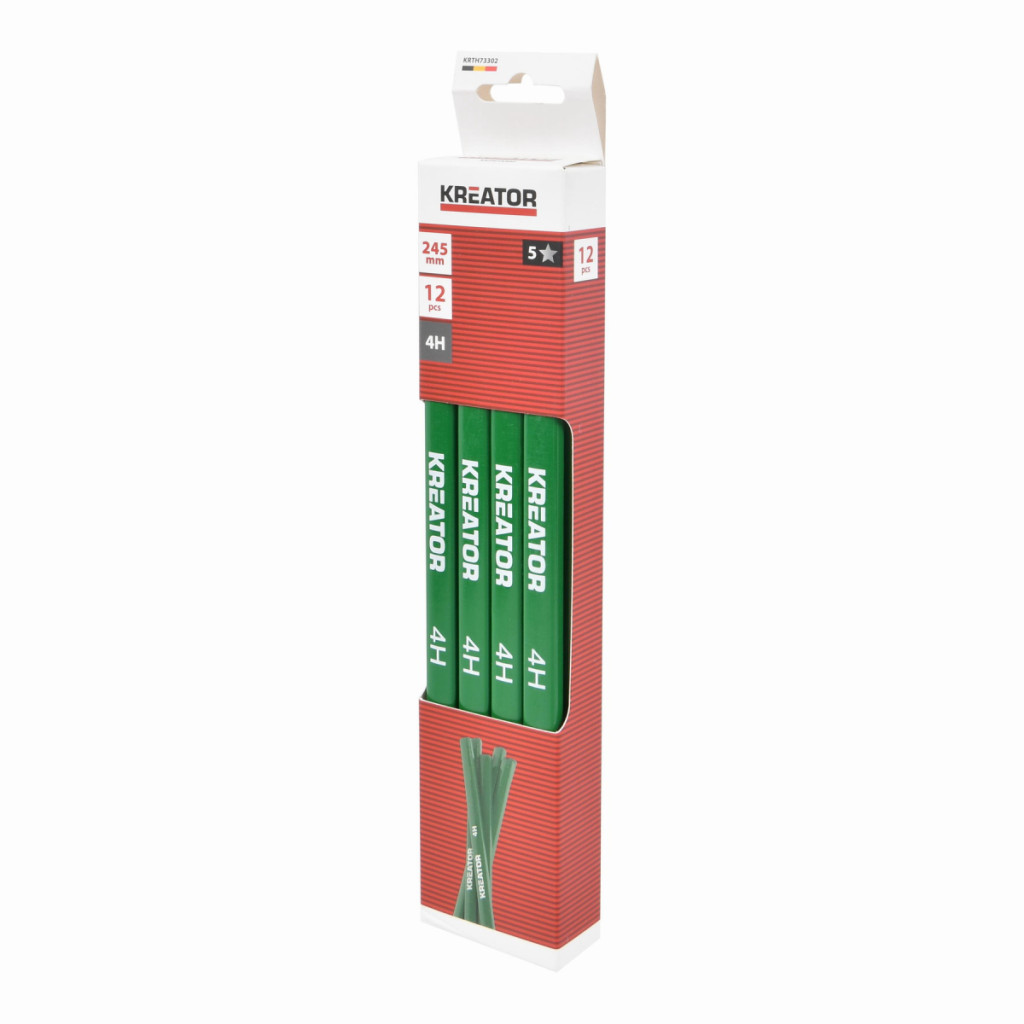 Dotaz na produktTyto tužky KRTH73302 z naší řady Kreator jsou určeny pro kameníky a zedníky. Kamenická tužka umožňuje kameníkovi vyznačit na povrchu kamene přesné čáry, řezy, body nebo ornamenty, které pak slouží jako vodítko pro ruční či strojní dělení a opracování materiálu. Tyto tužky se vyznačují velmi tvrdou tuhou. Tato vysoká tvrdost je nezbytná, aby tuha zanechala jasnou, tenkou a trvanlivou stopu na drsném a pevném povrchu kamene, aniž by se rychle opotřebovala nebo zlomila. Její plochý oválný tvar brání kutálení a umožňuje kreslit silné i tenké čáry a snadno se brousí nebo ostrouhá nožem. Tato sada obsahuje 12 červených tužek o délce 245 mm.