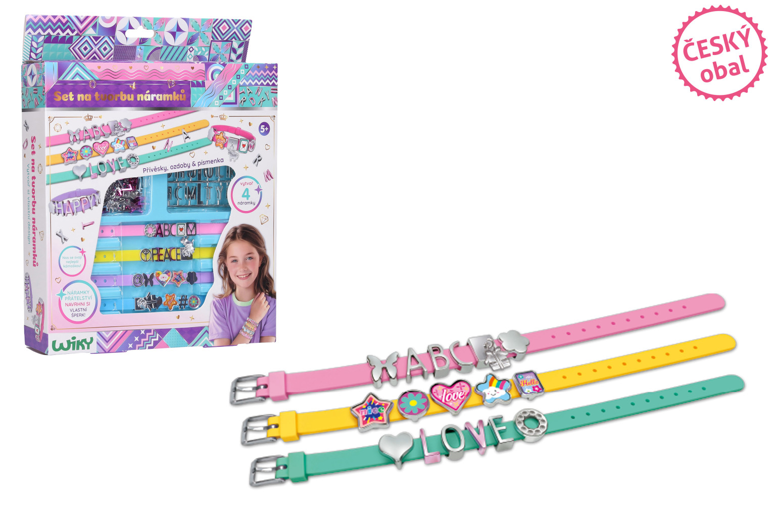 Dotaz na produktTvorba náramků s písmeny. Obsah balení - 4 náramky s nastavitelnou velikostí, písmenka, přívěšky.