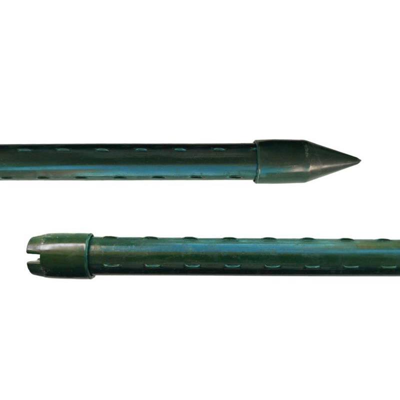 Zahradní kovová poplastovaná tyč určená k podpírání zeleniny a květinPomocí spojek lze z tyčí postavit různé tvary podpěr uzpůsobené potřebám různých druhů rostlinNa jedné straně koncovka do špičky