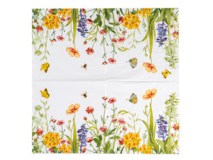 Papírové jídelní ubrousky MEADOW s dekorem rozkvetlé louky, 3vrstvé.