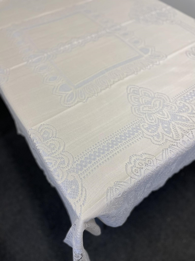 Dotaz na produktZpříjemněte si chvíle s rodinou u krásně prostřeného stolu. Jednobarevný krajkový ubrus s decentně ozdobným obloučkovým ukončením je ideální dekorací stolu v kuchyni.