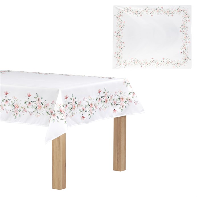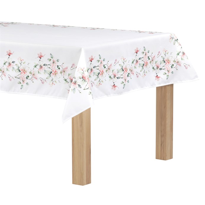 Dotaz na produktUbrus s motivem magnolie bílé barvy. Rozměr 130x160 cm. Materiál 100 % polyester. Praní na 30°C.