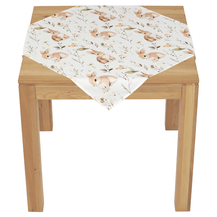 Dotaz na produktUbrus s rozměry 80 x 80 cm je vyroben z 100% polyesteru, který se snadno udržuje a je vhodný pro každodenní použití. Jemný vzor s motivem zajíců a květin v přírodních hnědých odstínech dodává ubrusu svěží a přívětivý vzhled, který oživí každý stůl. Díky polyesterovému materiálu je ubrus odolný vůči pomačkání a rychle schne, což usnadňuje jeho údržbu. Čtvercový tvar umožňuje univerzální využití na různé typy stolů, ať už v domácnosti nebo v komerčních prostorách. Tento ubrus je ideální volbou pro vytvoření příjemné atmosféry s jemným dekorativním akcentem.