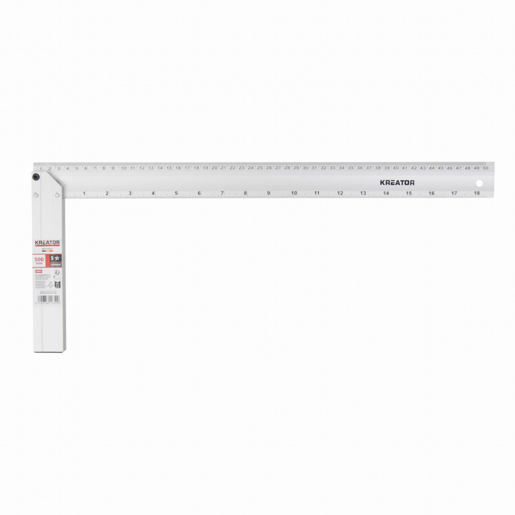 Dotaz na produktTento úhelník KRTH70503 od Kreator má délku 500 mm a je vyroben z pevného, ale lehkého hliníku. Lze jej použít k měření a značení úhlů 90st a 45st. Má stupnici v mm i palcích.