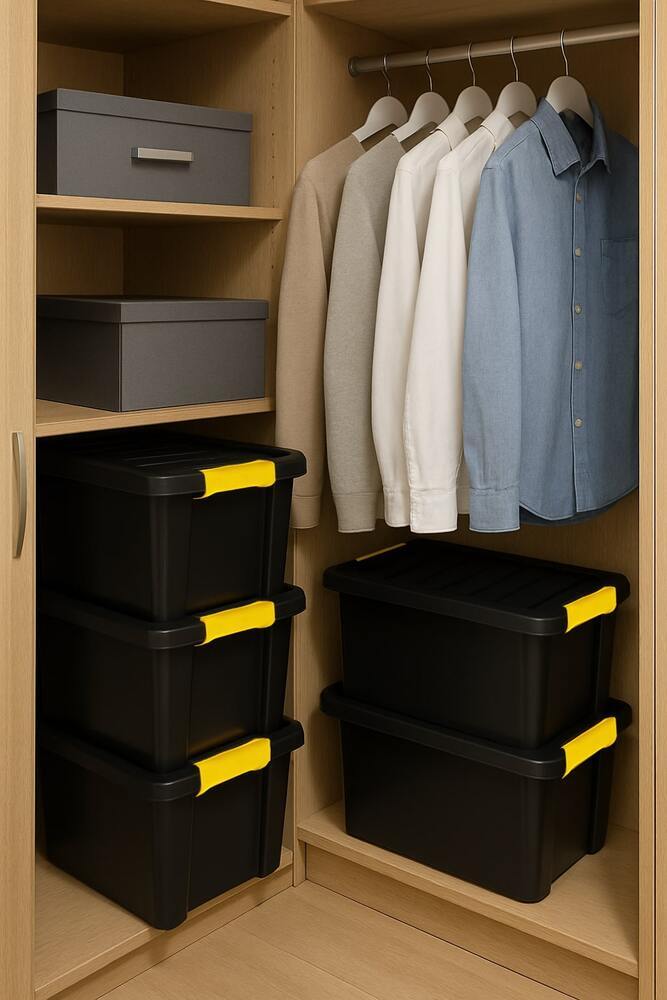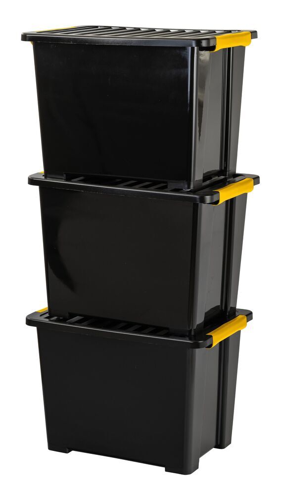 Dotaz na produktÚložný plastový box s víkem. Moderní design a kvalitní provedení od švýcarské značky Rotho. Objem 65L. Lesklá černá barva. Víko je opatřeno žlutými postranními úchyty pro bezpečné zaklapnutí. Boxy lze stohovat na sebe. Box lze pořídit i v praktické sadě 3 kusů.