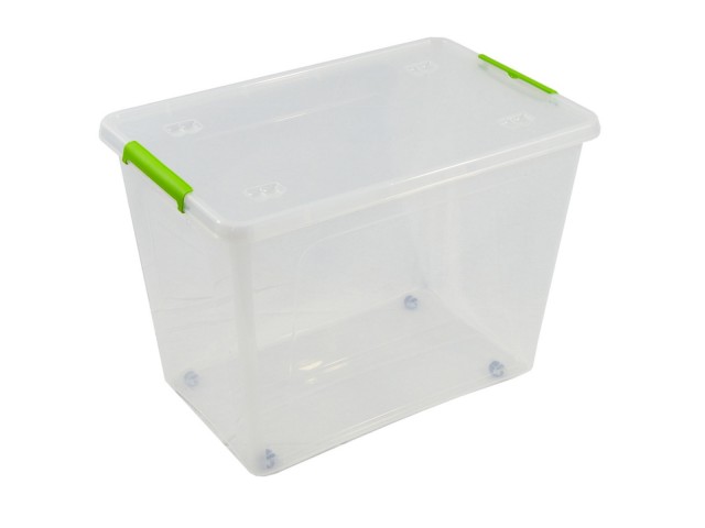 Dotaz na produktPrůhledný box s víkem, kolečky a zavíracími klipy v zelené barvě. Je vyroben z plastu, je odolný proti povětrnostním vlivům, vlhkosti a prachu.