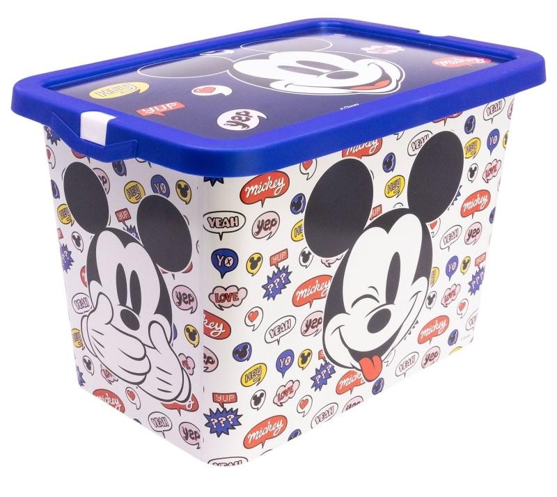 Úložný box s víkem na klip s motivem Mickey. Bez ostrých hran, ideální do dětského pokoje. Kapacita: 7 l. Rozměry: 29 x 19 x 18 cm. Materiál: plast, zdravotně nezávadný. Pro děti od 3 let. Výrobce: Stor. Stor, S.L.P. General Martínez Campos 5328010 Madrid, Spain info@storline.com