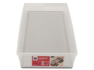 Kombinovatelný úložný box z řady SISTEMO do zásuvek a pro uložení všeho v domácnosti i v dílně a to nejen pouze na kuchyňské náčiní, ale i na kancelářské potřeby, kosmetické pomůcky, šití a různé druhu nářadí, prostě každý si vybere podle své potřeby.Úložné boxy SISTEMO jsou jedinečné svou možností vytvářet nekonečné kombinace dle vašich potřeb a rozměrů vašich zásuvek (šuplíků).Výhodou je jejich vnitřní Non-Slip povrch, aby vám menší věci neklouzaly v boxu a zároveň protiskluzová úprava spodní části boxu, aby box držel na svém místě v zásuvce.