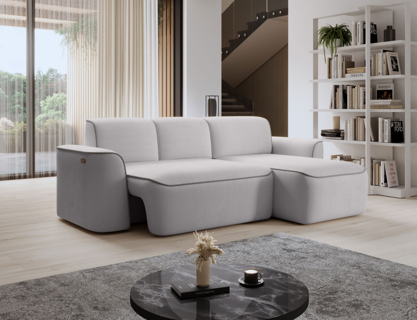 Dotaz na produkt Na splátky ještě dnesRohová pohovka Ume je elegantní rohová pohovka ve tvaru L, která zaujme svým moderním designem a vysoce kvalitním řemeslným zpracováním. Sedák rohové pohovky je vyroben z HR pěny s vysokou hustotou HR Foam + T3030, která poskytuje pohodlné a odolné sezení. Opěradlo rohové pohovky je vyrobeno z pěny s hustotou T2540 + T2315, která zaručuje správnou oporu zad a pohodlí při relaxaci. Rohová pohovka Ume se vyznačuje působivými rozměry 287x190x88 cm. Díky vysoce kvalitním materiálům a pevné konstrukci vám tato rohová pohovka poskytne mnoho let pohodlného používání a spokojenosti. Rohová pohovka Ume je navíc vybavena elektronicky výsuvným sedákem, díky čemuž je používání tohoto nábytku ještě pohodlnější a funkčnější. Díky elektrickému mechanismu lze polohu sedáku snadno nastavit individuálním preferencím, což umožňuje přizpůsobení polohy sezení potřebám uživatele. Díky tomuto inovativnímu doplňku je rohová pohovka Ume vynikající volbou pro lidi, kteří si ve svém interiéru cení pohodlí a moderních řešení. Látky: Amore 03, Paros 05