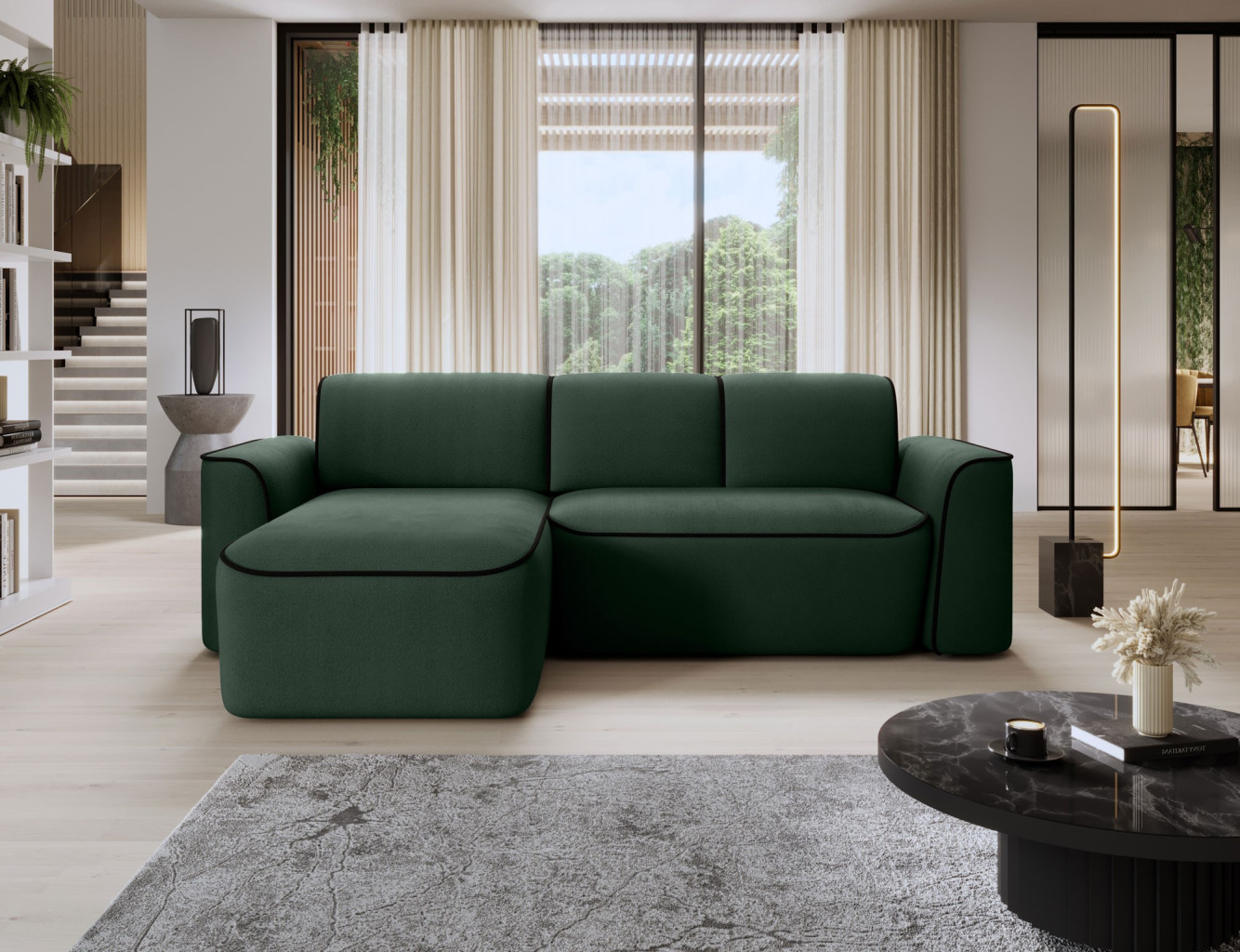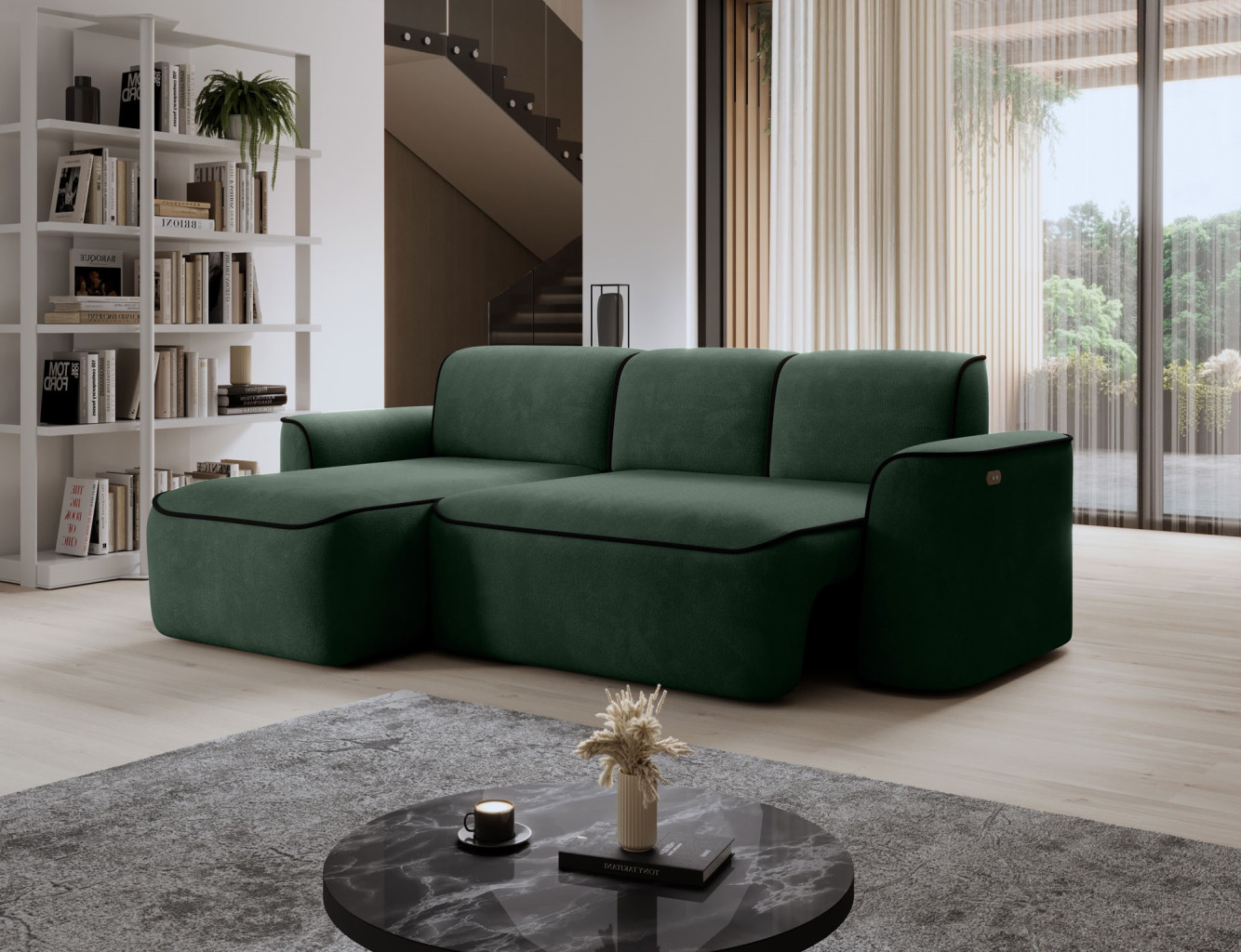 Dotaz na produkt Na splátky ještě dnesRohová pohovka Ume je elegantní rohová pohovka ve tvaru L, která zaujme svým moderním designem a vysoce kvalitním řemeslným zpracováním. Sedák rohové pohovky je vyroben z HR pěny s vysokou hustotou HR Foam + T3030, která poskytuje pohodlné a odolné sezení. Opěradlo rohové pohovky je vyrobeno z pěny s hustotou T2540 + T2315, která zaručuje správnou oporu zad a pohodlí při relaxaci. Rohová pohovka Ume se vyznačuje působivými rozměry 287x190x88 cm. Díky vysoce kvalitním materiálům a pevné konstrukci vám tato rohová pohovka poskytne mnoho let pohodlného používání a spokojenosti. Rohová pohovka Ume je navíc vybavena elektronicky výsuvným sedákem, díky čemuž je používání tohoto nábytku ještě pohodlnější a funkčnější. Díky elektrickému mechanismu lze polohu sedáku snadno nastavit individuálním preferencím, což umožňuje přizpůsobení polohy sezení potřebám uživatele. Díky tomuto inovativnímu doplňku je rohová pohovka Ume vynikající volbou pro lidi, kteří si ve svém interiéru cení pohodlí a moderních řešení. Látky: Amore 35, Velvetmat 10