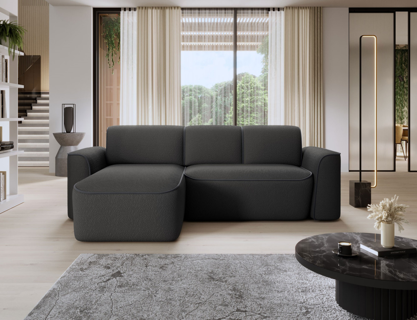 Dotaz na produkt Na splátky ještě dnesRohová pohovka Ume je elegantní rohová pohovka ve tvaru L, která zaujme svým moderním designem a vysoce kvalitním řemeslným zpracováním. Sedák rohové pohovky je vyroben z HR pěny s vysokou hustotou HR Foam + T3030, která poskytuje pohodlné a odolné sezení. Opěradlo rohové pohovky je vyrobeno z pěny s hustotou T2540 + T2315, která zaručuje správnou oporu zad a pohodlí při relaxaci. Rohová pohovka Ume se vyznačuje působivými rozměry 287x190x88 cm. Díky vysoce kvalitním materiálům a pevné konstrukci vám tato rohová pohovka poskytne mnoho let pohodlného používání a spokojenosti. Rohová pohovka Ume je navíc vybavena elektronicky výsuvným sedákem, díky čemuž je používání tohoto nábytku ještě pohodlnější a funkčnější. Díky elektrickému mechanismu lze polohu sedáku snadno nastavit individuálním preferencím, což umožňuje přizpůsobení polohy sezení potřebám uživatele. Díky tomuto inovativnímu doplňku je rohová pohovka Ume vynikající volbou pro lidi, kteří si ve svém interiéru cení pohodlí a moderních řešení. Látky: Royal 05, Velvetmat 6