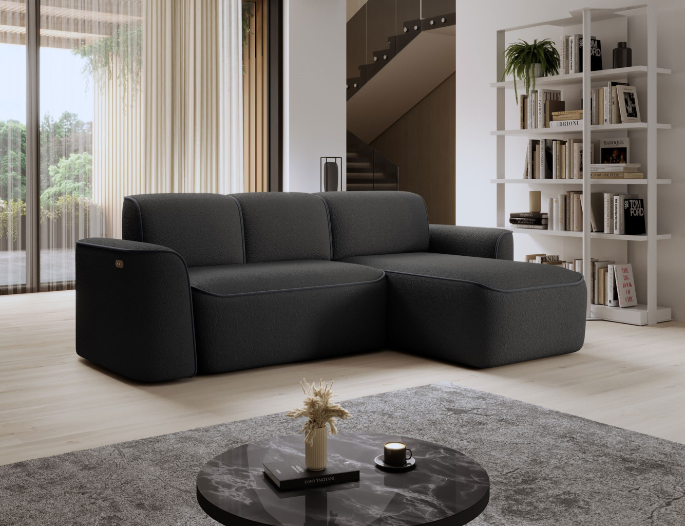 Dotaz na produkt Na splátky ještě dnesRohová pohovka Ume je elegantní rohová pohovka ve tvaru L, která zaujme svým moderním designem a vysoce kvalitním řemeslným zpracováním. Sedák rohové pohovky je vyroben z HR pěny s vysokou hustotou HR Foam + T3030, která poskytuje pohodlné a odolné sezení. Opěradlo rohové pohovky je vyrobeno z pěny s hustotou T2540 + T2315, která zaručuje správnou oporu zad a pohodlí při relaxaci. Rohová pohovka Ume se vyznačuje působivými rozměry 287x190x88 cm. Díky vysoce kvalitním materiálům a pevné konstrukci vám tato rohová pohovka poskytne mnoho let pohodlného používání a spokojenosti. Rohová pohovka Ume je navíc vybavena elektronicky výsuvným sedákem, díky čemuž je používání tohoto nábytku ještě pohodlnější a funkčnější. Díky elektrickému mechanismu lze polohu sedáku snadno nastavit individuálním preferencím, což umožňuje přizpůsobení polohy sezení potřebám uživatele. Díky tomuto inovativnímu doplňku je rohová pohovka Ume vynikající volbou pro lidi, kteří si ve svém interiéru cení pohodlí a moderních řešení. Látky: Royal 05, Velvetmat 6