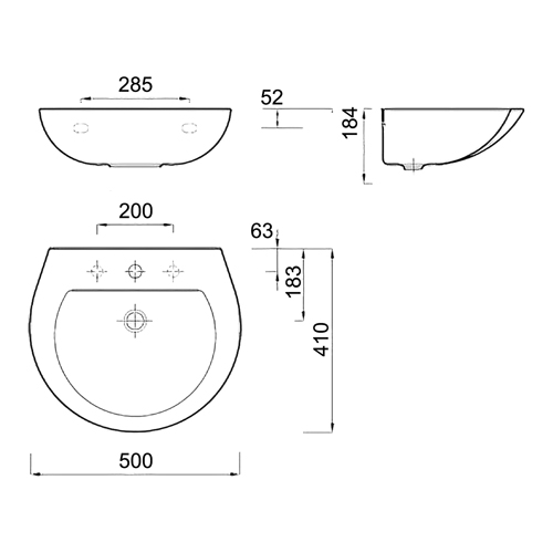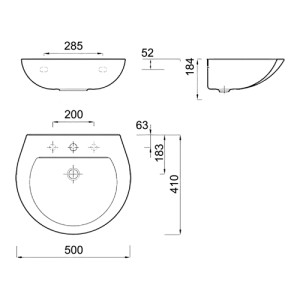 Umyvadlo 50x41 cm s otvorem pro baterii, TRINNITY