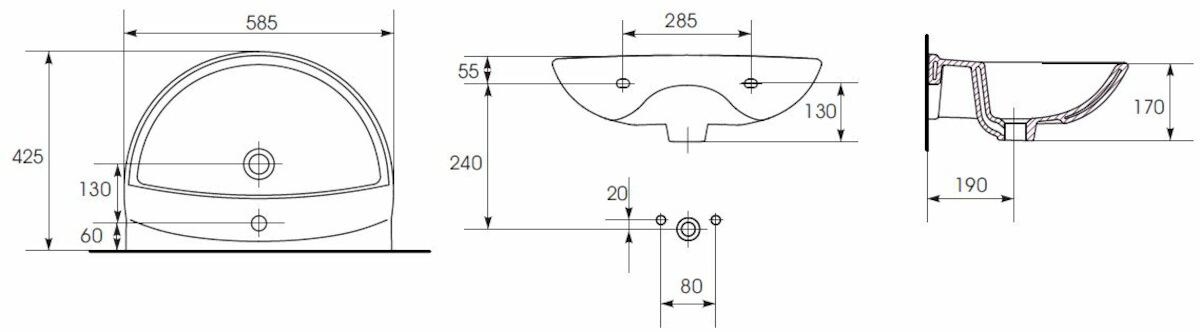 Dotaz na produktZávěsné umyvadlo Ceramia S-Line Pro 60,5 cm bílé barvy s přepadem a otvorem na baterii.