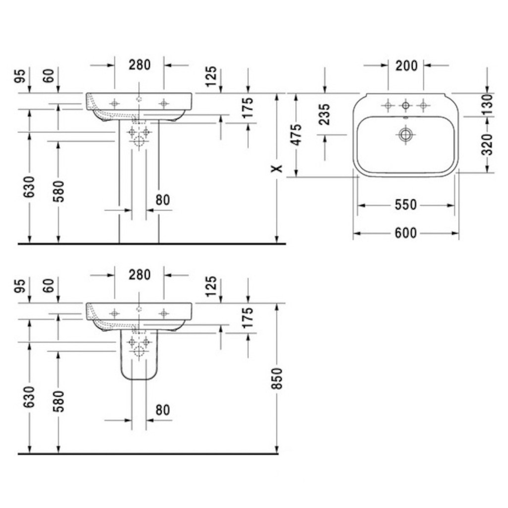 Umyvadlo Duravit Happy D.2 60x47,5 cm otvor pro baterii uprostřed 2316600000
