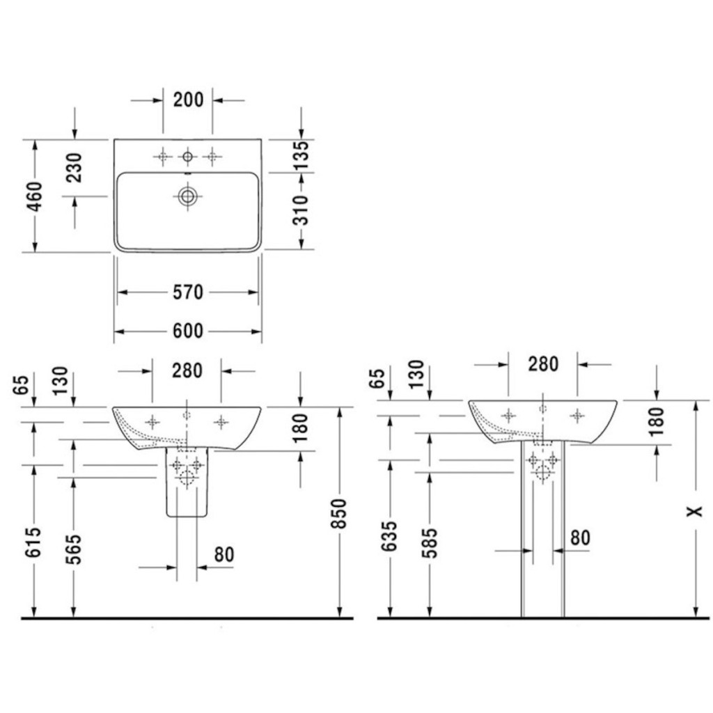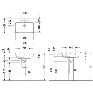 Umyvadlo Duravit Me By Starck 60x46 cm otvor pro baterii uprostřed 2335600000