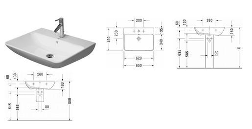 Umyvadlo Duravit Me By Starck 65x49 cm otvor pro baterii uprostřed 23356500001