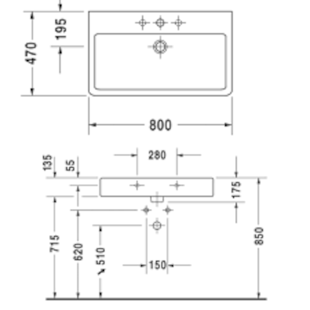 Umyvadlo Duravit Vero 80x47 cm otvor pro baterii, s přetokem 0454800000