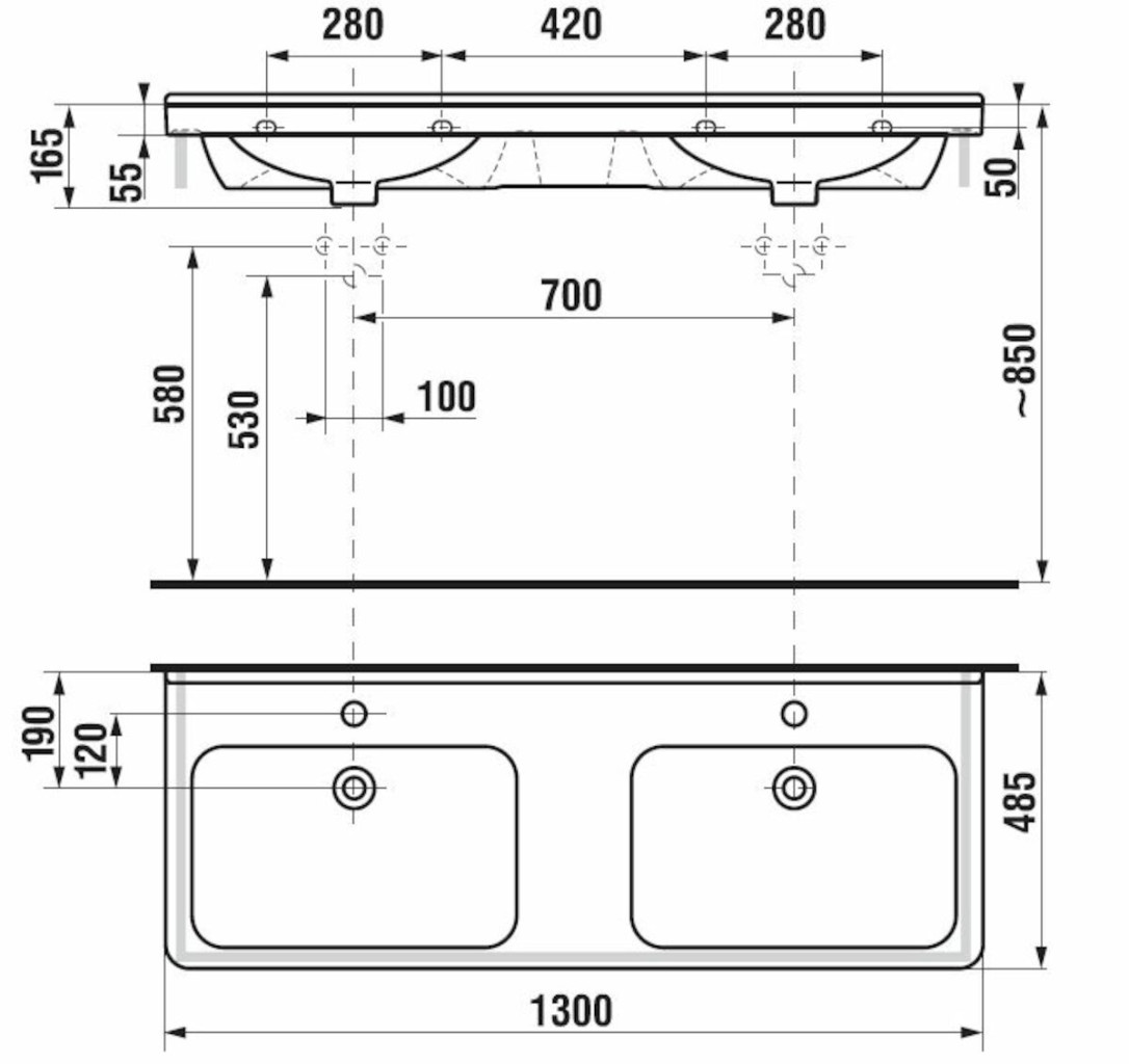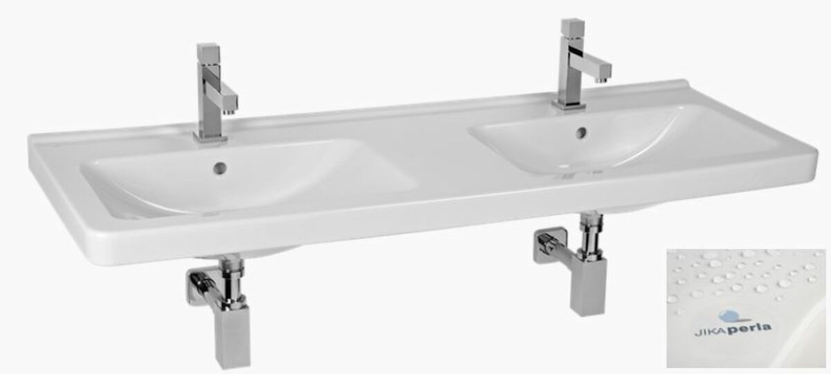 Dotaz na produkt Na splátky ještě dnesDvojumyvadlo ze série Cubito od firmy JIKA. Umyvadlo má hranatý design a má otvory na baterie uprostřed. Umyvadlo je dobré skombinovat s krytem na sifon. Rozměry umyvadla jsou 130 x 48,5 x 16,5 cm. Balení neobsahuje ani sifon ani baterii.