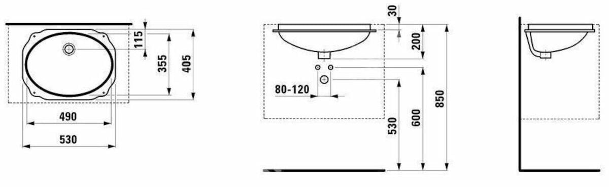 Umyvadlo Laufen Birova 49x35,5 cm bez otvoru pro baterii H8111910000001