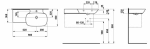 Umyvadlo Laufen Ino 90x45 cm otvor pro baterii uprostřed H8133010001041