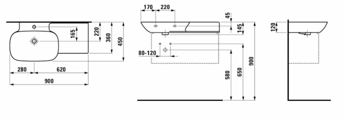 Umyvadlo Laufen Ino 90x45 cm otvor pro baterii uprostřed H8133020001041