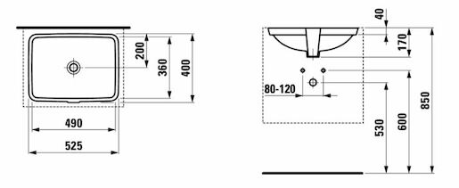 Umyvadlo Laufen Pro 49x36 cm bez otvoru pro baterii H8119600001091