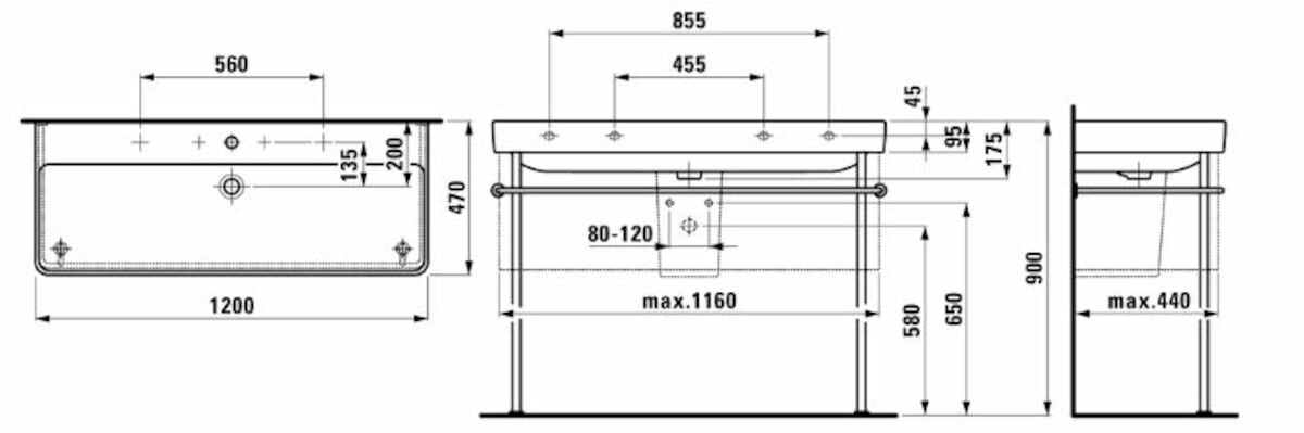 Umyvadlo Laufen Pro S 120x46 cm dva otvory pro baterii H8149650001071
