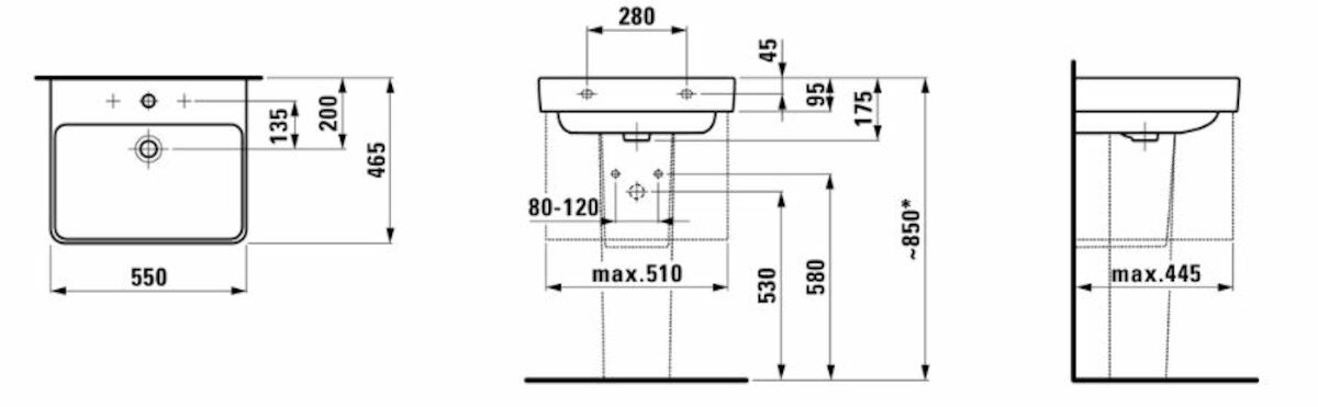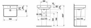Umyvadlo Laufen Pro S 55x46,5 cm otvor pro baterii, bez přepadu H8109620001561