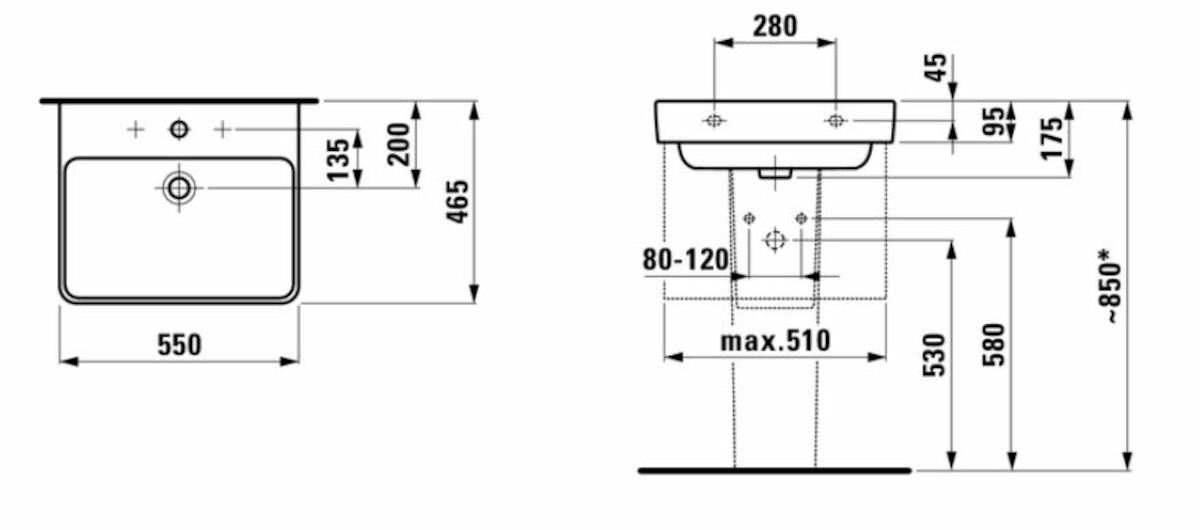 Umyvadlo Laufen Pro S 55x46,5 cm otvor pro baterii uprostřed H8109624001041