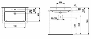 Umyvadlo Laufen Pro S 70x46,5 cm otvor pro baterii uprostřed H8169674001041