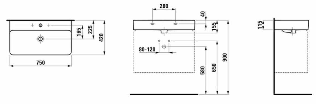 Umyvadlo Laufen Val 75x42 cm otvor pro baterii uprostřed H8102850001041