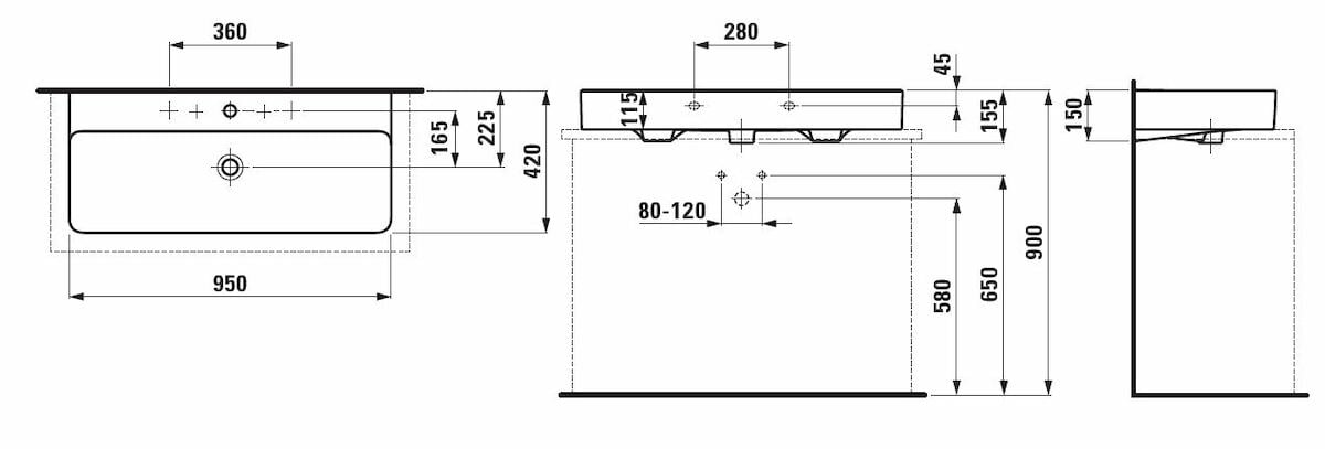 Umyvadlo Laufen Val 95x42 cm otvor pro baterii uprostřed H8162870001041